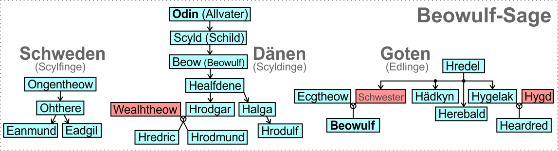 So können wir nun in dieser Nacherzählung der Beowulf-Sage folgenden Stammbaum finden: